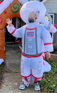 I was still feeling healthy when I arrived wearing a spacesuit costume (closest thing to a hazmat suit I could find) to drop off presents. I even did a moon-jump!